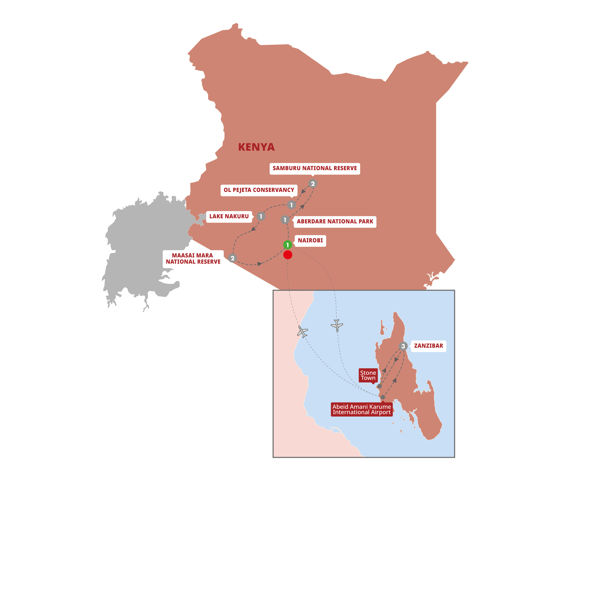 Embark on a journey to the enchanting home of the African safari, fiery savannah sunsets and the colorfully clad Maasai - an epic adventure through Kenya's iconic wilderness. Finish your trip embracing tropical island paradise in Zanzibar. The Spice Island may be best known for its pristine beaches and crystal-clear sea, but its rich trading heritage is equally a delight for culture and history buffs.